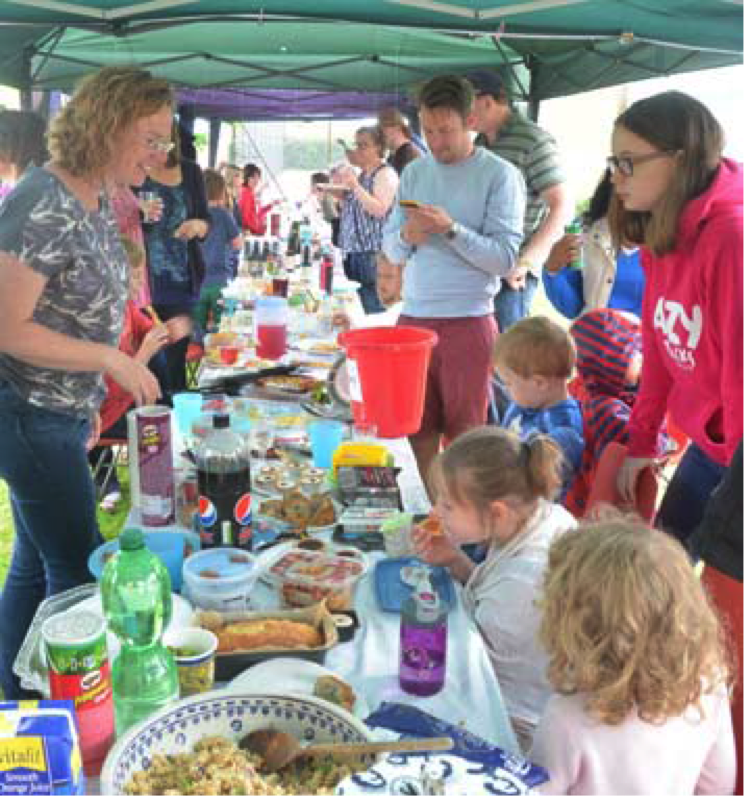 The Marcham community event to mark the 90th birthday of Her Majesty the Queen was a great success, despite the interesting weather on the day. A small corps of hardy souls even managed to eat lunch in the street under umbrellas—defying the downpour of rain.